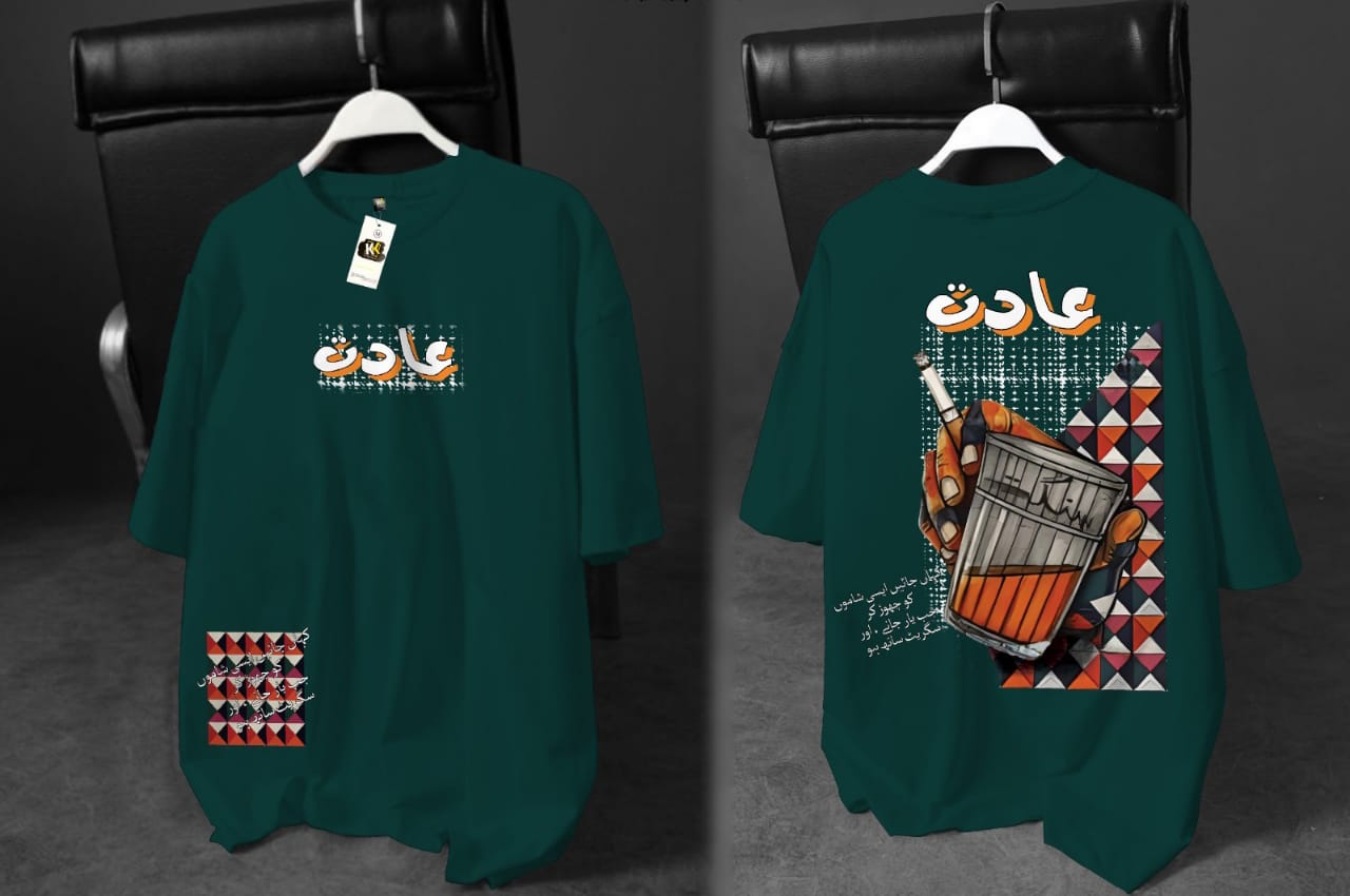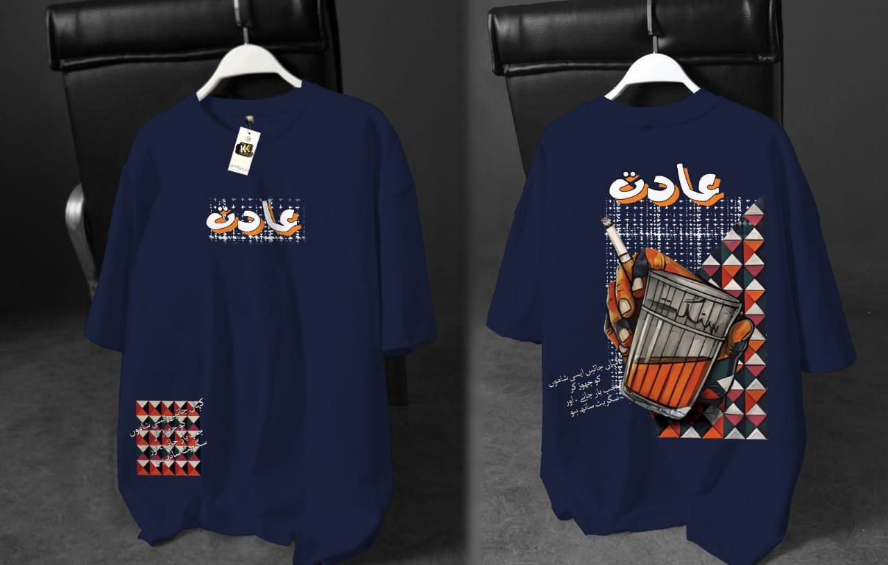Front: Clean and minimal “Aadat” typography in bold orange, giving it a subtle yet impactful look.
