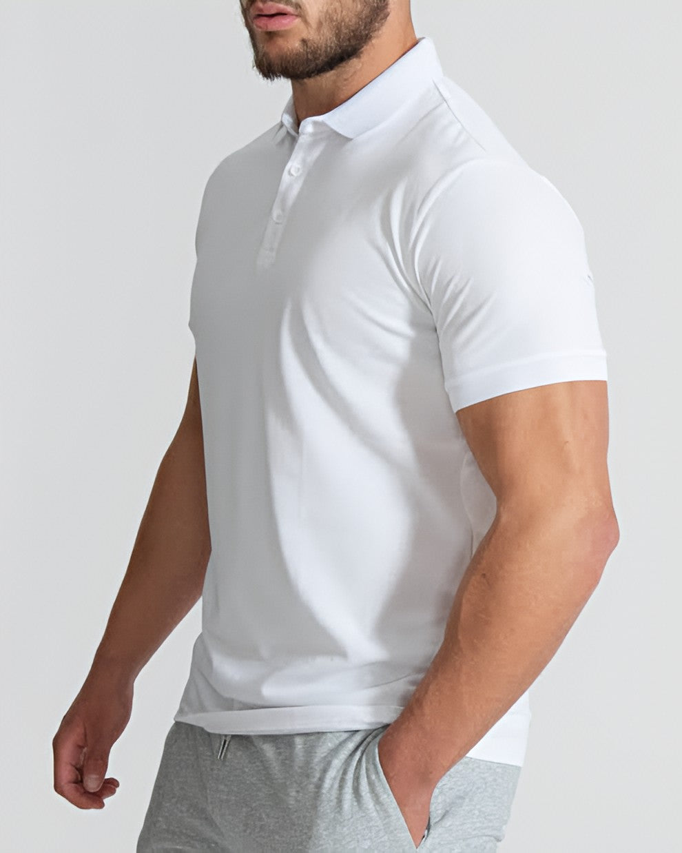 - Polo collar with button placket